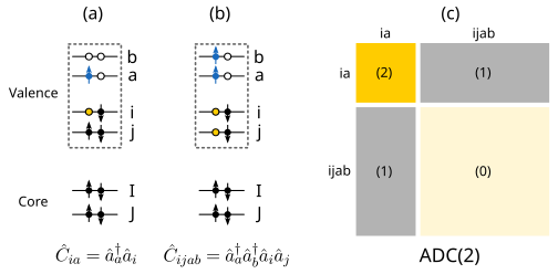 Dreuw, A., & Wormit, M. (2015). The algebraic diagrammatic construction scheme for the polarization propagator for the calculation of excited states. WIREs Comput. Mol. Sci., 5, 82–95. 10.1002/wcms.1206