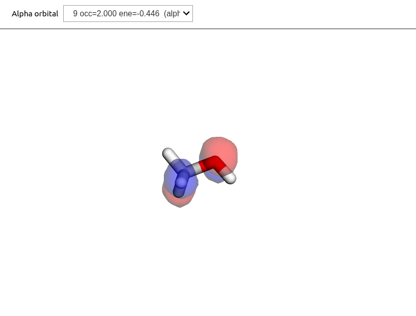 Here we consider the optimization of the electronic structure using Hartree--Fock (HF) and Kohn-Sham density functional theory (KS-DFT), and how to plot the resulting molecular orbitals. Our example is methanol, using the xTB structure from the previous section.